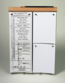 Mit dem neuartigen Zettelhalter ist es möglich, Merk- oder Mitteilungszettel in verschiedenen Formaten übersichtlich, geordnet und platzsparend aufzubewahren. Eine integrierte Wandhalterung dient dazu, diese kleine, einfache „Kommunikationszentrale" an einem bestimmten Ort in der Wohnung oder im Büro anzubringen, sodass bald eine gewohnheitsmäßige Nutzung stattfinden kann und ein frustrierendes Suchen verhindert wird.